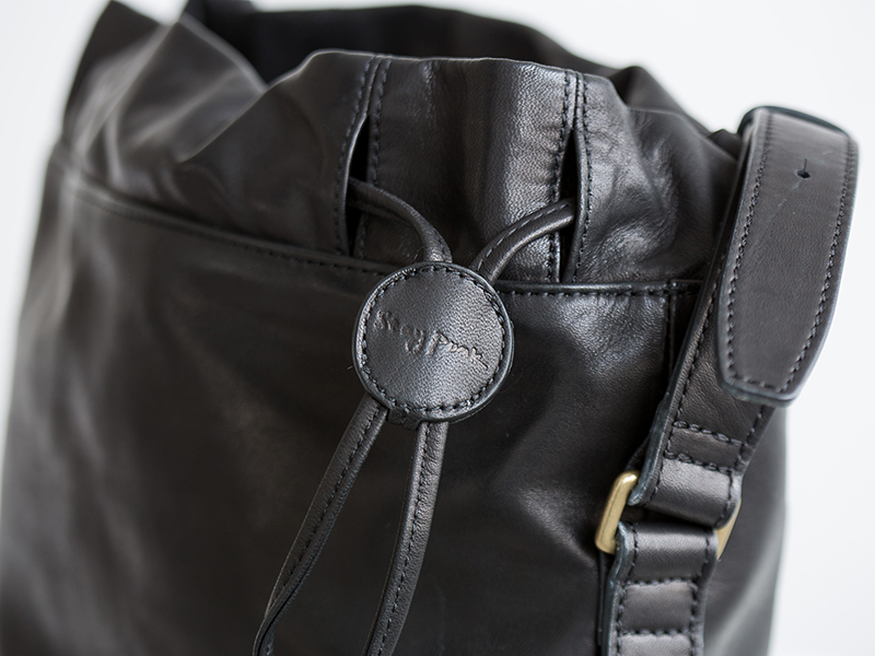 ホースハイドレザーを使用した巾着式のカメラバッグ