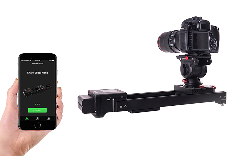 幅26.4cm。軽量コンパクトデザインながら水平15kgの機材重量を動かせる電動スライダー。約4.5万円