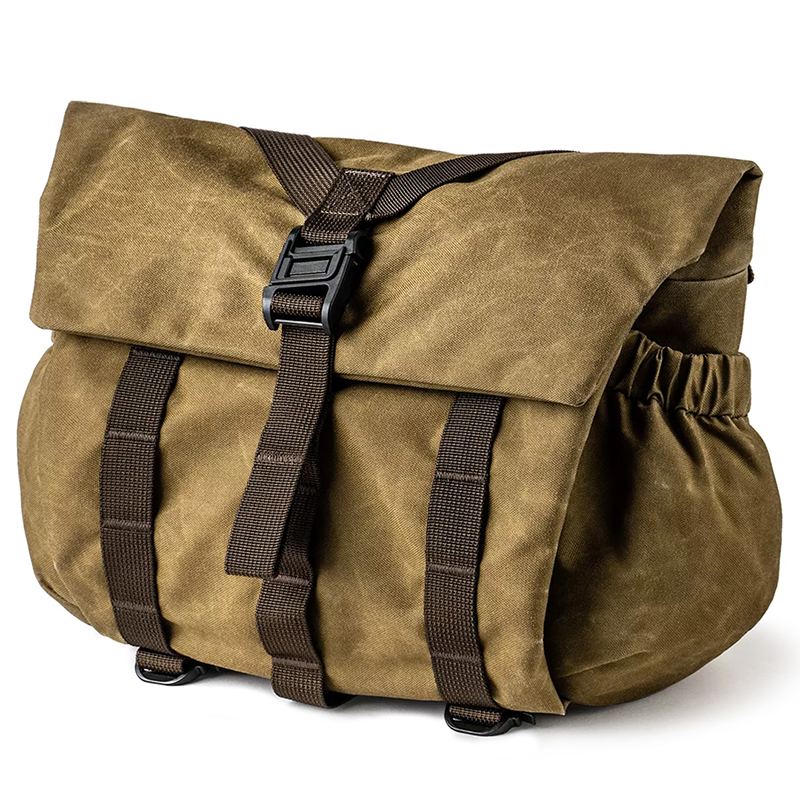 ヴォータンクラフト、一眼レフ+レンズ2~3本を収納できるビンテージ風バッグ「スカウト」。グリーンとブラックの2色