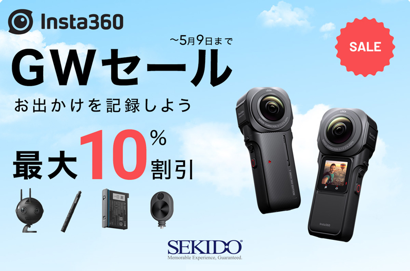 セキド、最大10%オフの「Insta360 GWセール」を開催中