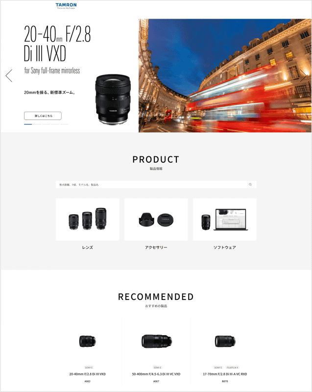 白&青のシンプルなデザインに…タムロン公式Webサイトがリニューアル
