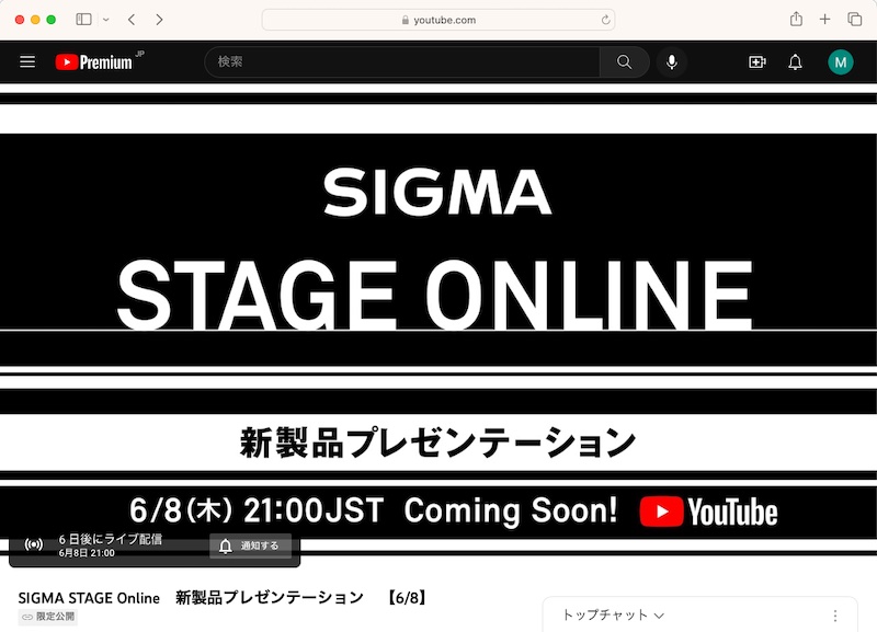シグマ、10月5日17時の新製品発表を予告。同日21時からライブ配信も
