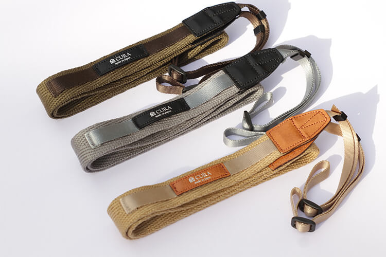 cam-in、牛革を使用したショルダーバッグと7色のカメラ用ストラップ
