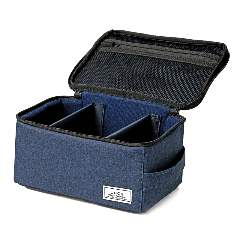 使わない時に折りたためるインナーボックス。小型一眼レフやミラーレス機+レンズの収納に