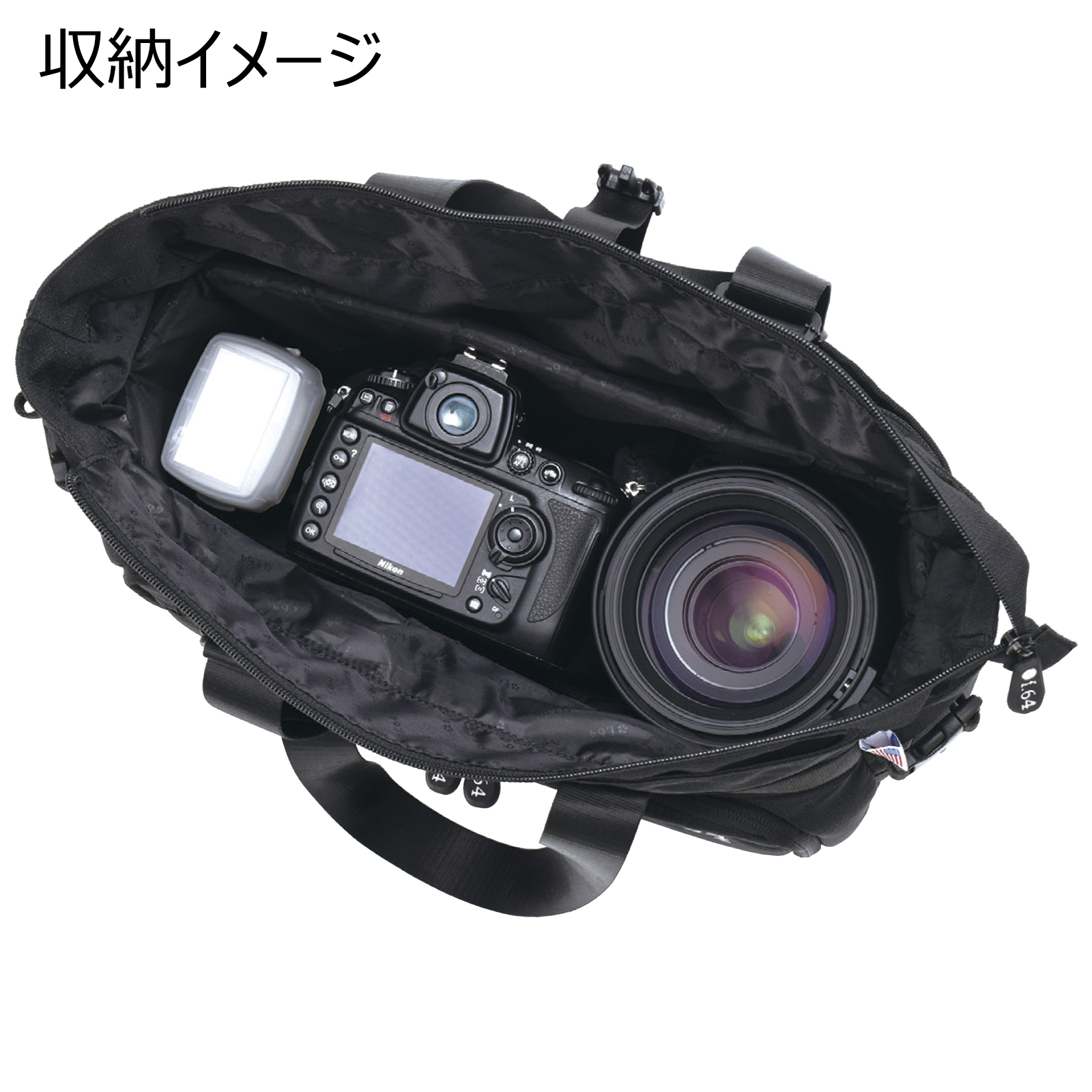 f.64、フレキシブルに収納量を変えられる上下2気室のカメラバッグ