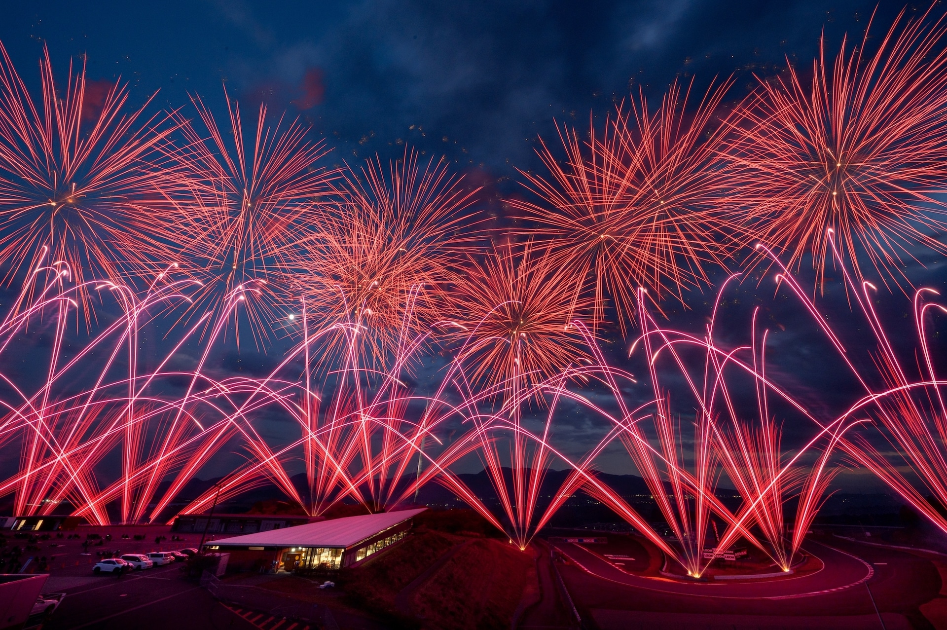 富士スピードウェイで花火とモータースポーツが競演。約8,000発の花火が打ち上がる