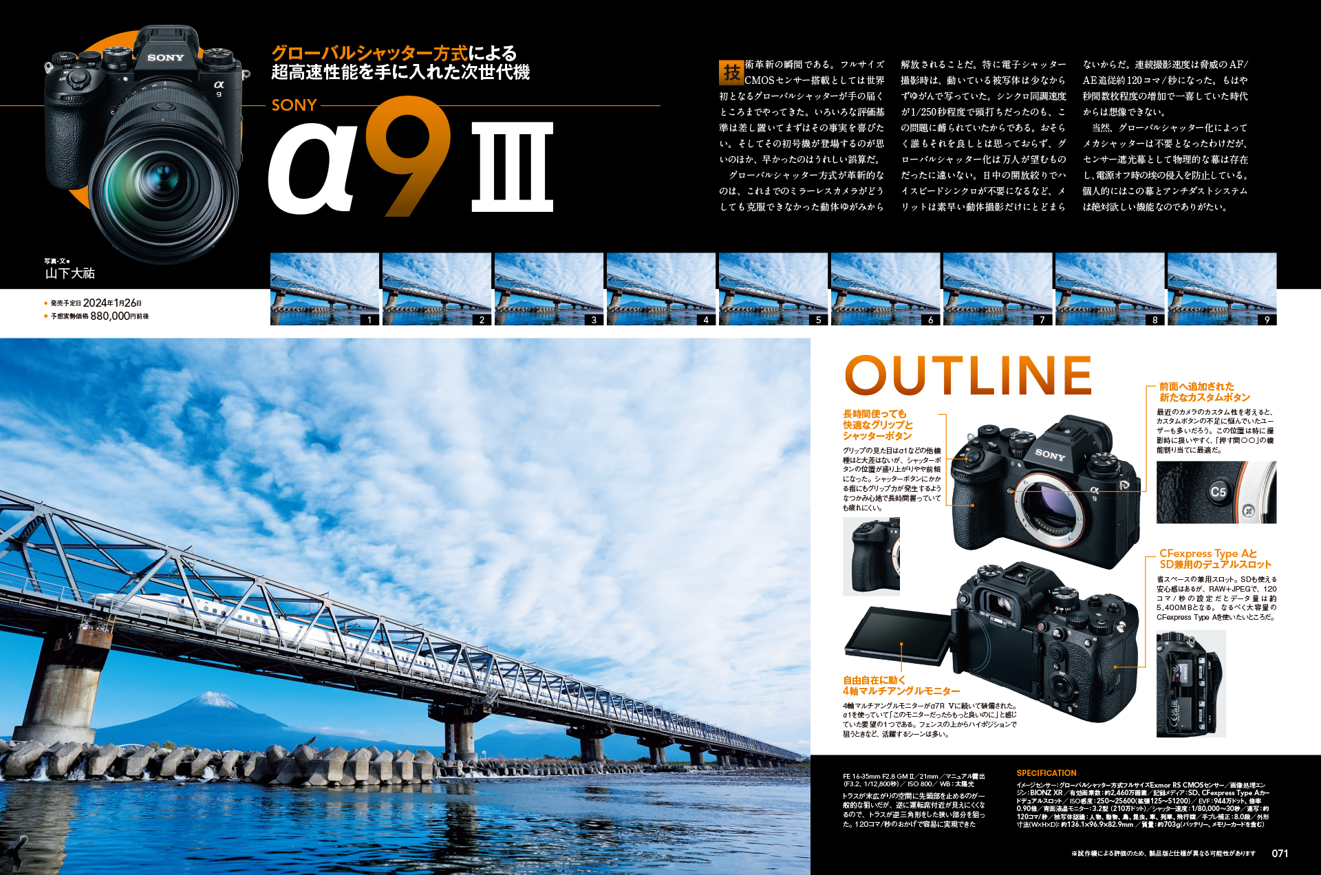 2024年1月号は「日本の絶景ベストセレクション108 東日本編」。レビューではα9 IIIも