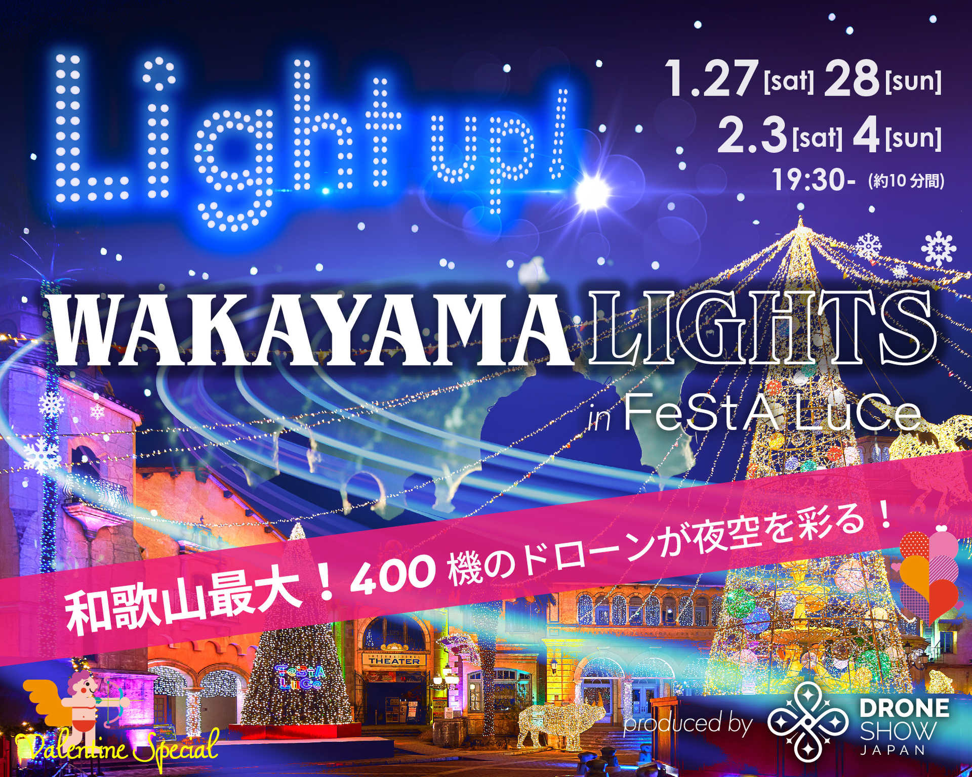 和歌山マリーナシティ ボルトヨーロッパで県下最大のドローンショー