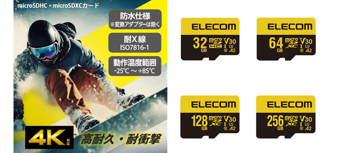 エレコム、防水・耐X線性能を備えたmicroSDカード…ビデオスピードクラスV30に対応