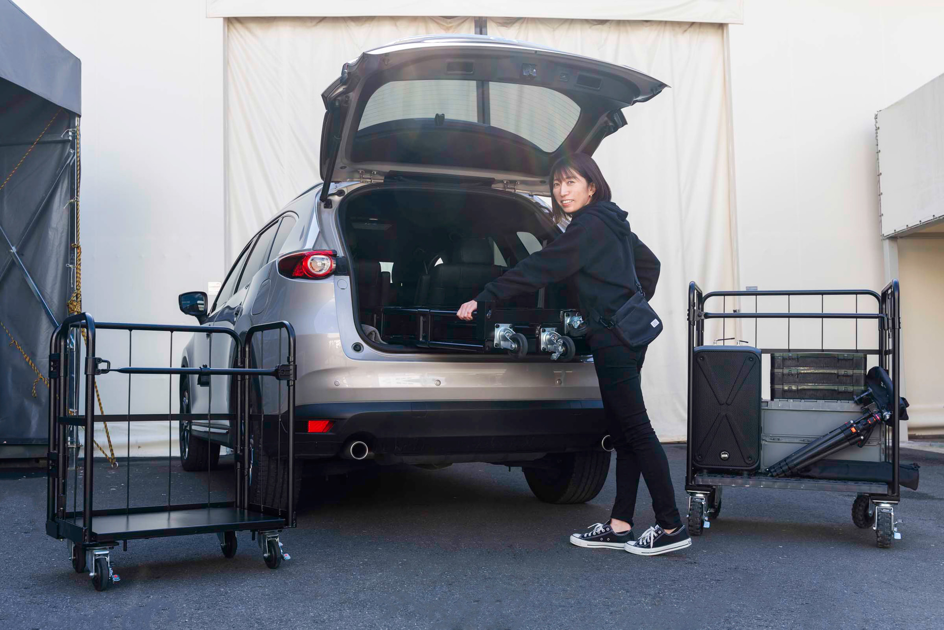 映像業界向けに開発 車に詰め込める「天使のカゴ台車」