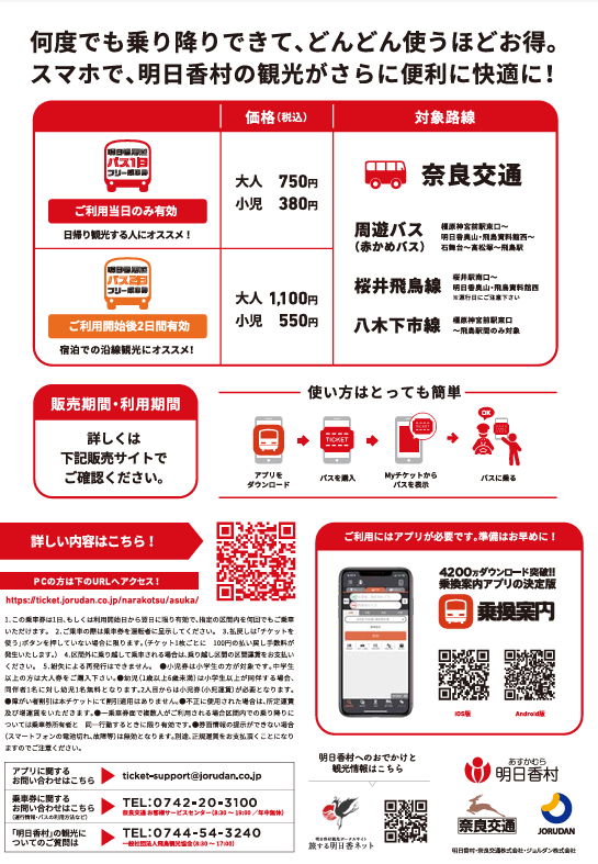 奈良交通・明日香周遊バスが乗り放題になるモバイルチケット