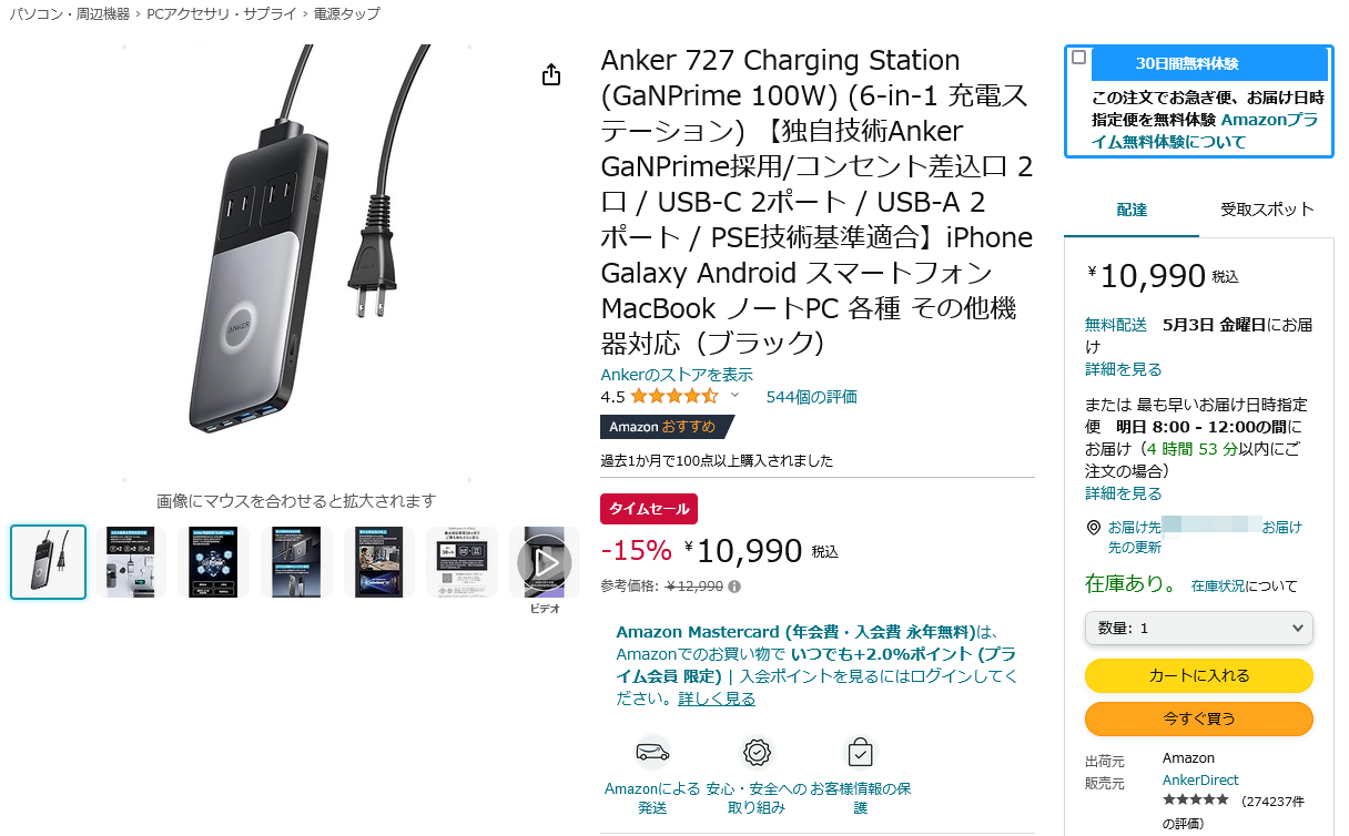 コンセント差込×2を備えたAnkerの充電ステーションが15%OFF