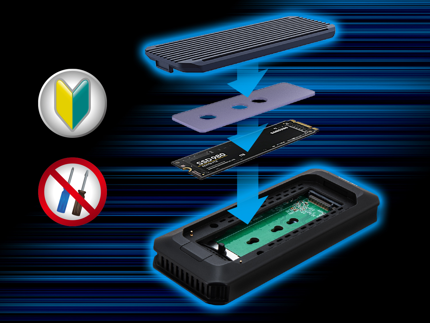 工具不要で使える2.5インチ外付けドライブケース