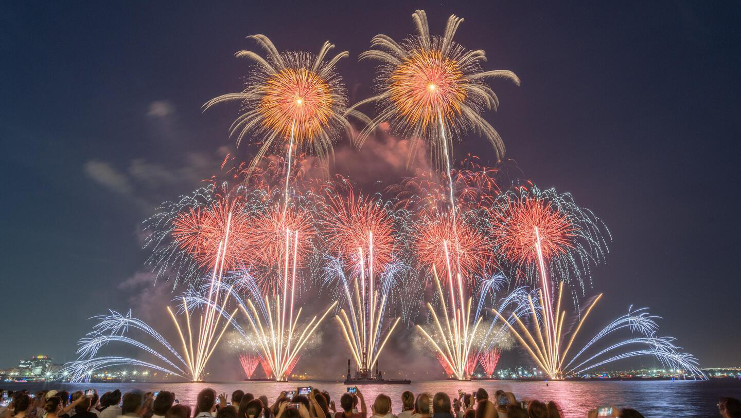 夏の夜空に約2万発の花火が打ち上がる「みなとみらいスマートフェスティバル2024」