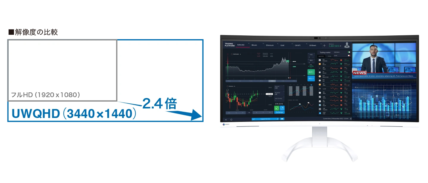 EIZOから34.1型の省スペース曲面モニター