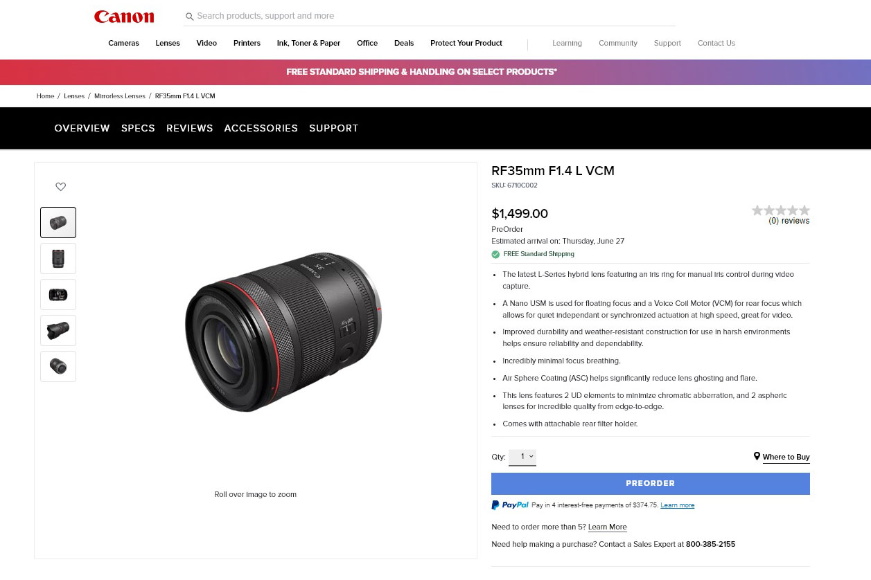 キヤノン「RF35mm F1.4 L VCM」が米国で発表…動画対応の“ハイブリッドレンズ”