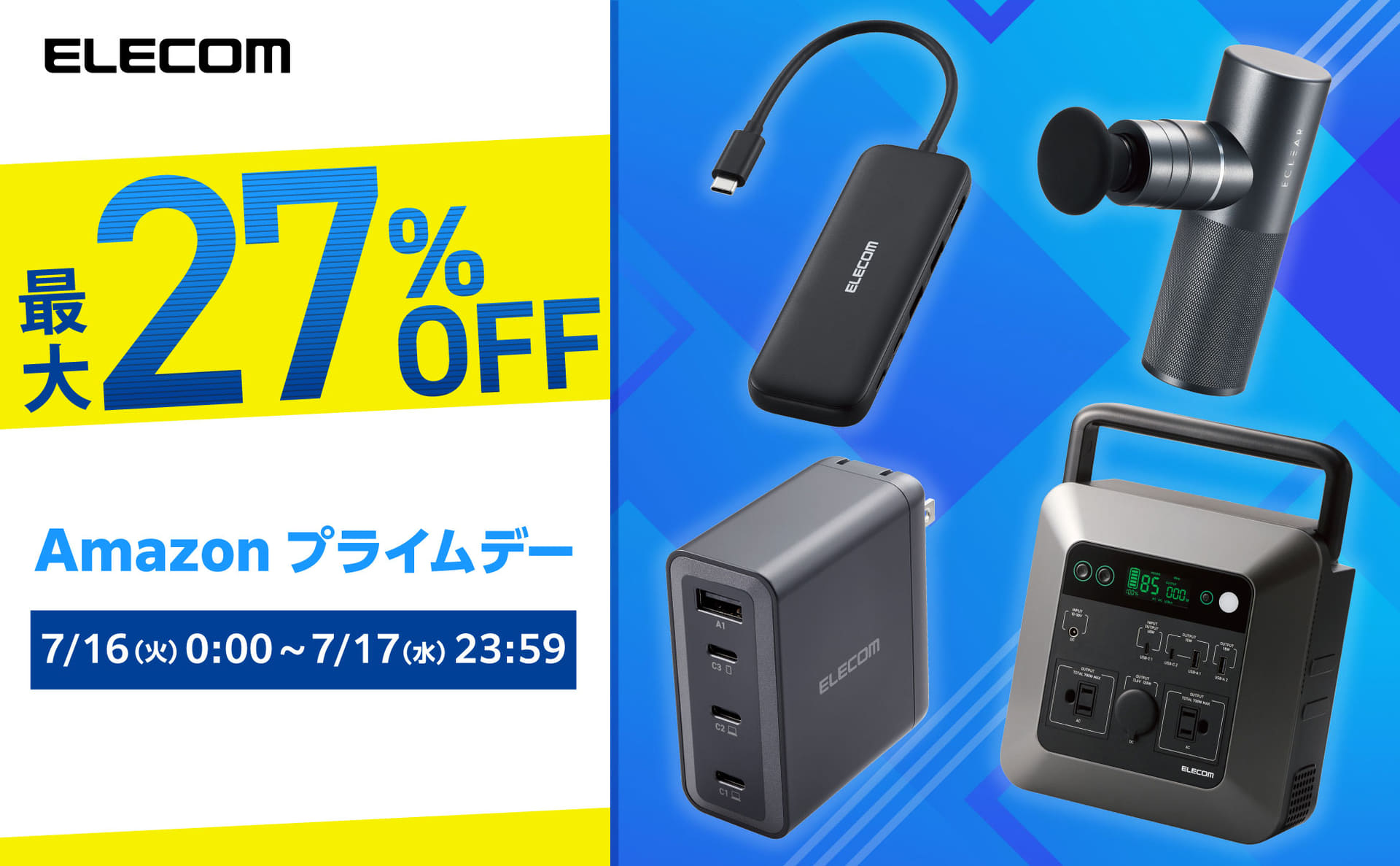 エレコム、「Amazon プライムデー」でポータブル電源やドッキングステーションなどセール販売