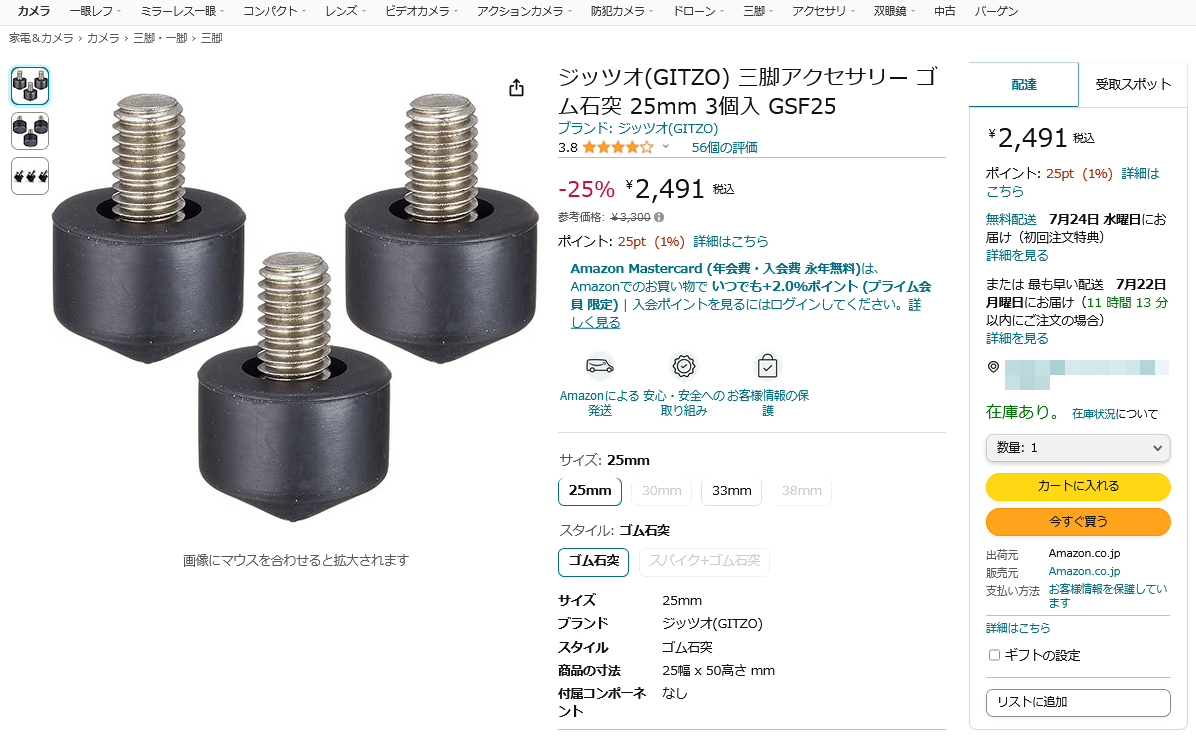 GITZO三脚の交換用石突が25%OFFでセール中