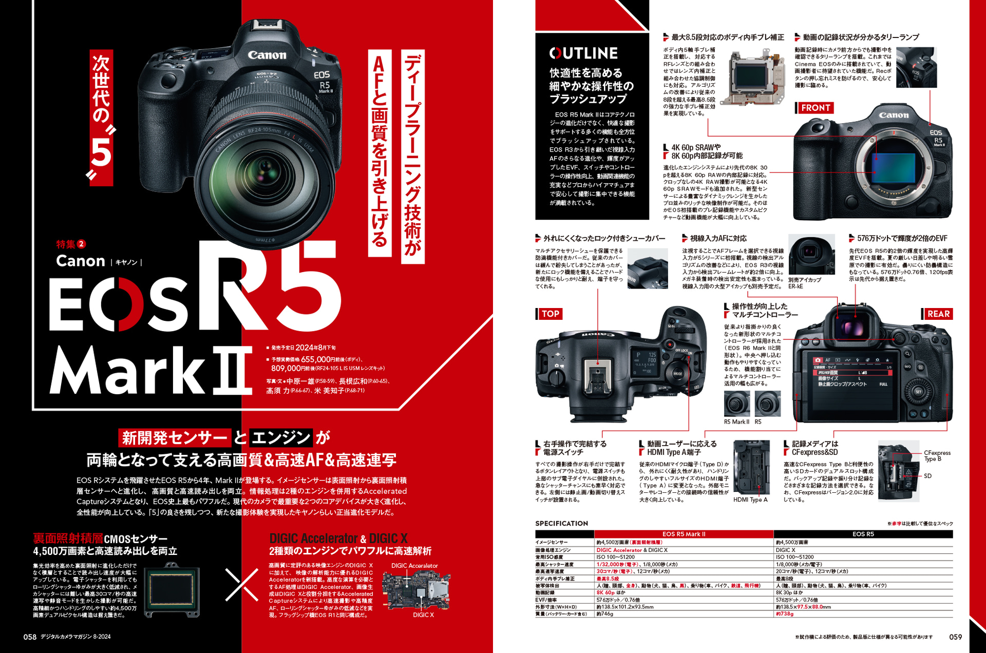 キヤノンの4,500万画素機「EOS R5 Mark II」が登場…カメラ内アップスケーリングで“約1億7,900万画素”に