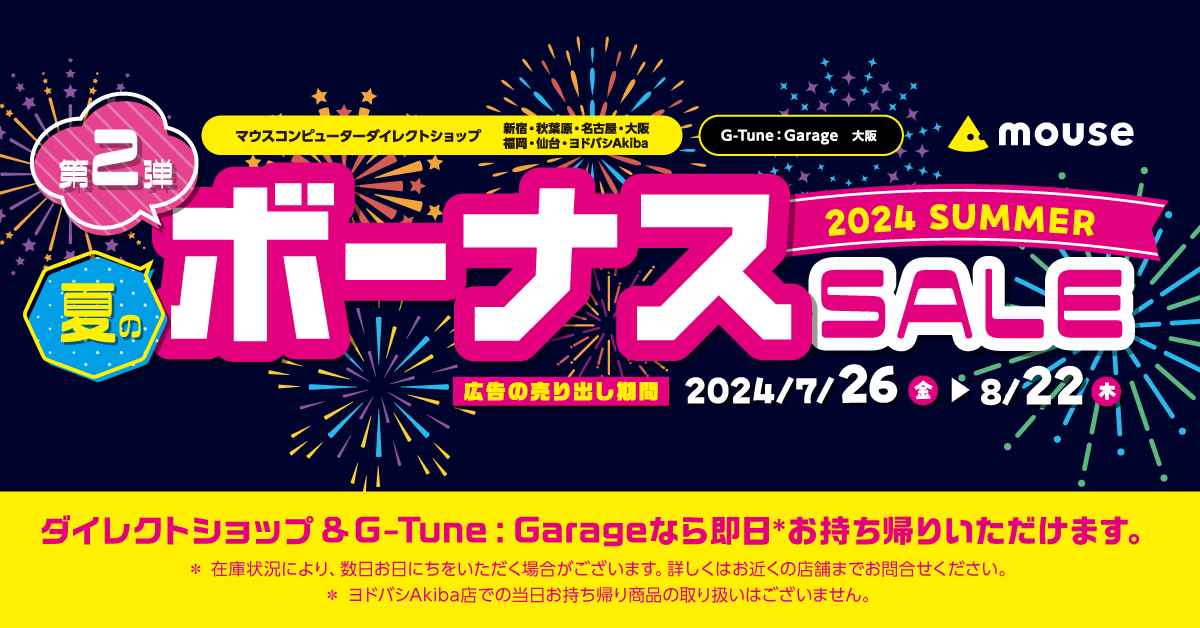 マウスコンピューターダイレクトショップで「夏のボーナスセール」…製品の当日持ち帰りも
