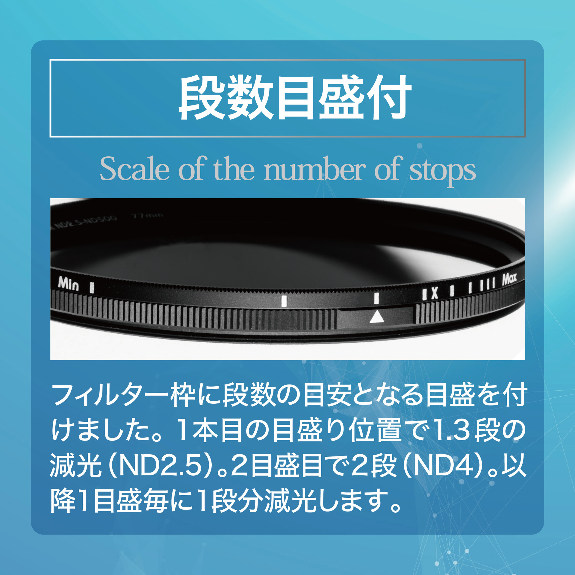 マルミ、枠に減光段数を刻んだ可変NDフィルター「DHG SUPER VARIABLE ND2.5-500」