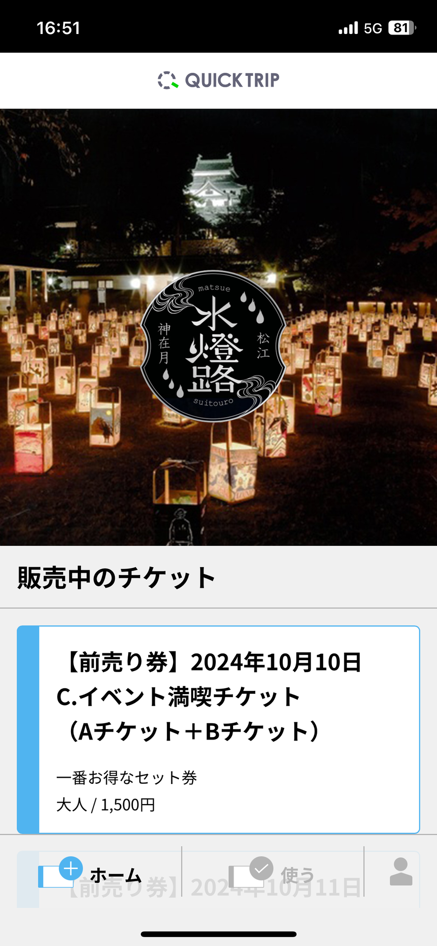 ライトアップイベント「松江水燈路」のモバイルチケットが登場