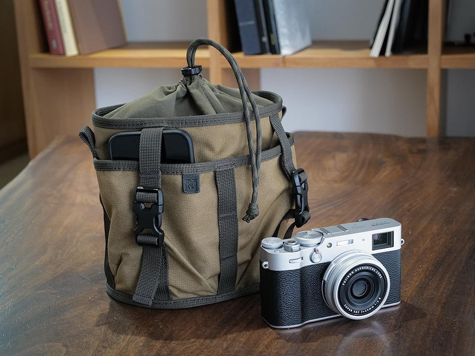 ミラーレスカメラがすっぽり入る「カメラきんちゃく袋 II」