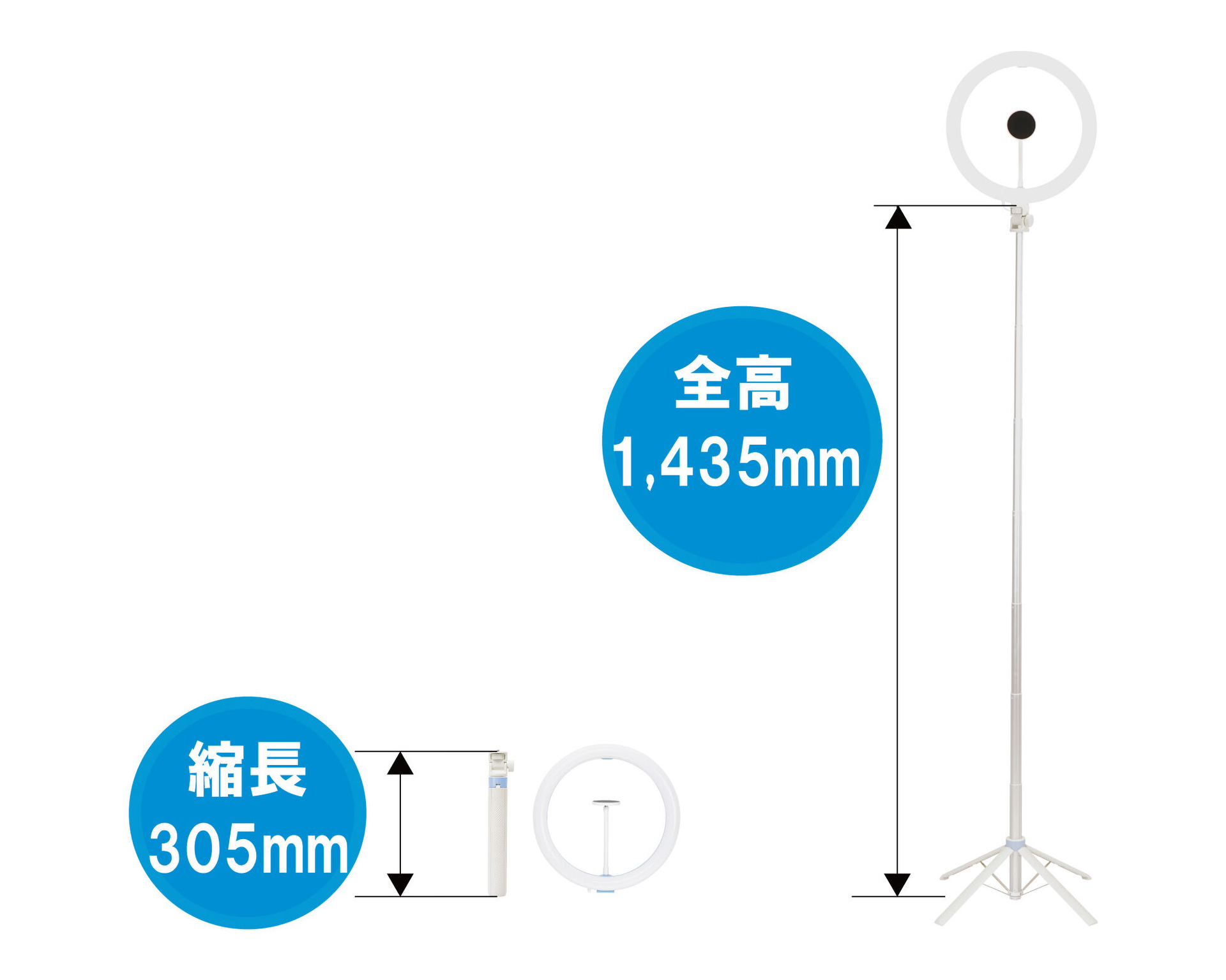 スマホ2台が装着できるLEDリングライト付きのスタンド