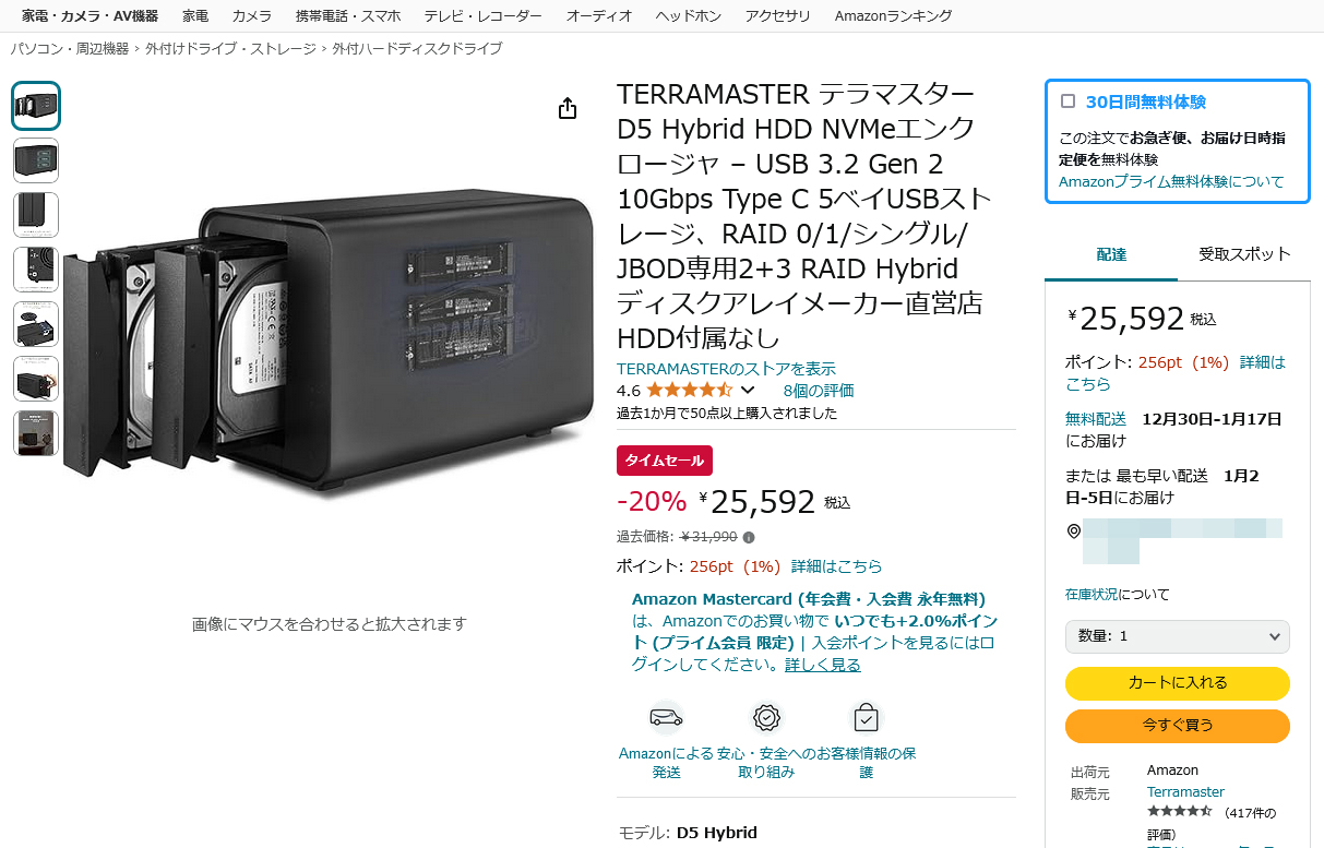 年末年始のデータ整理作業にも…TERRAMASTERの外付けデバイス「D5 Hybrid」が20%OFF