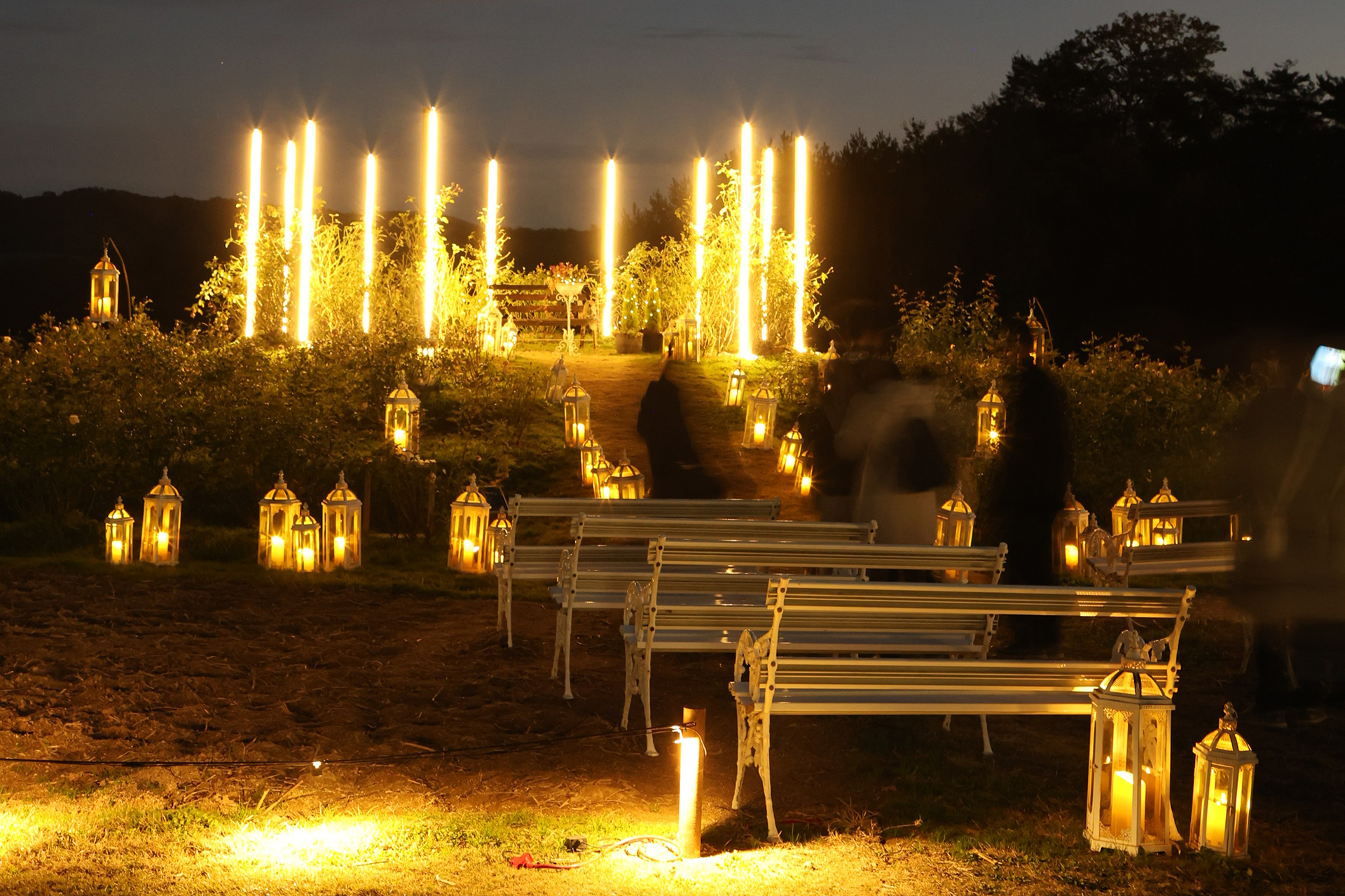 高原でキャンドルの光に包まれるライトアップイベント