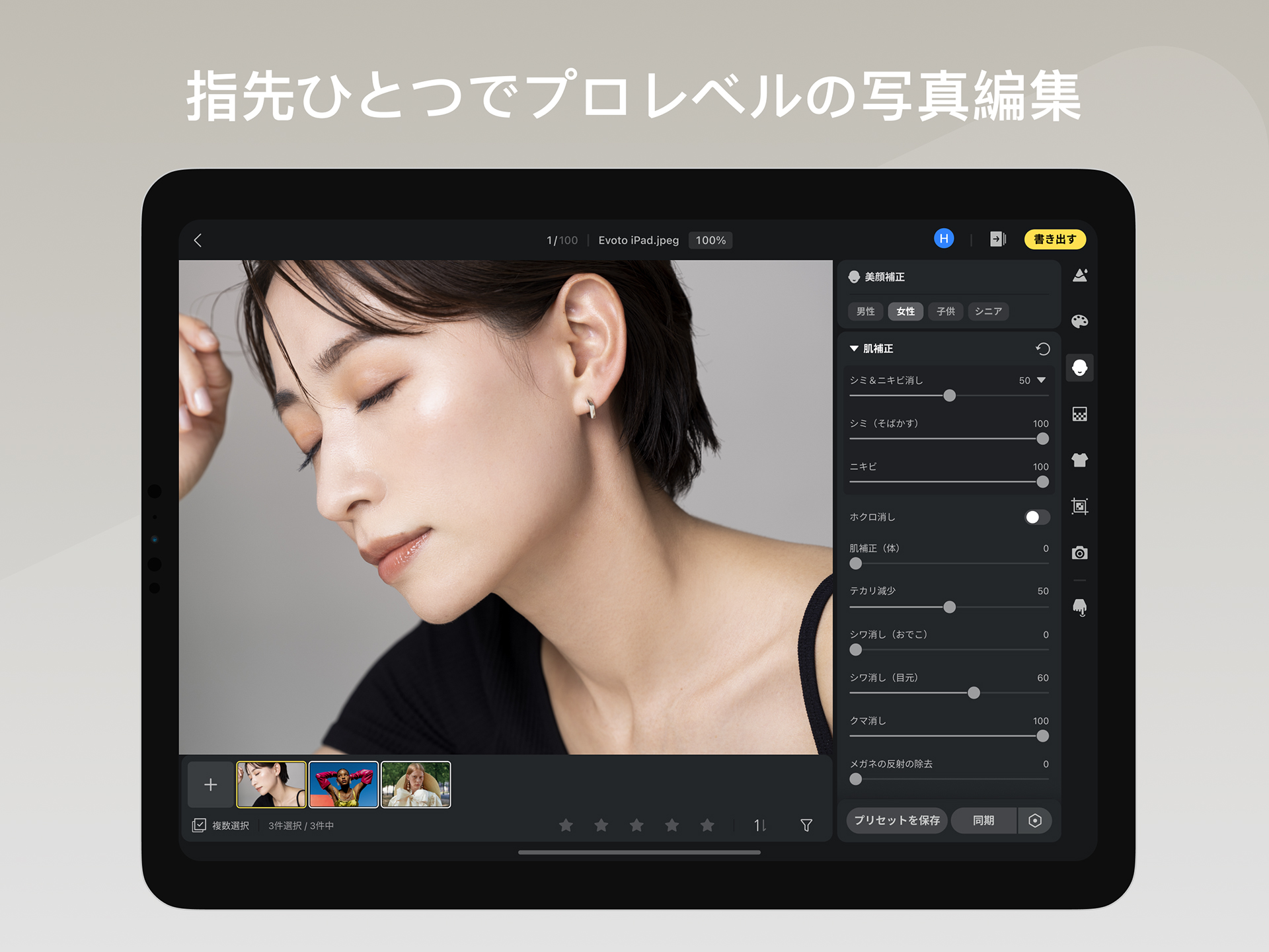 レタッチソフト「Evoto」に、口元の歪み補正や白髪を除去する新機能