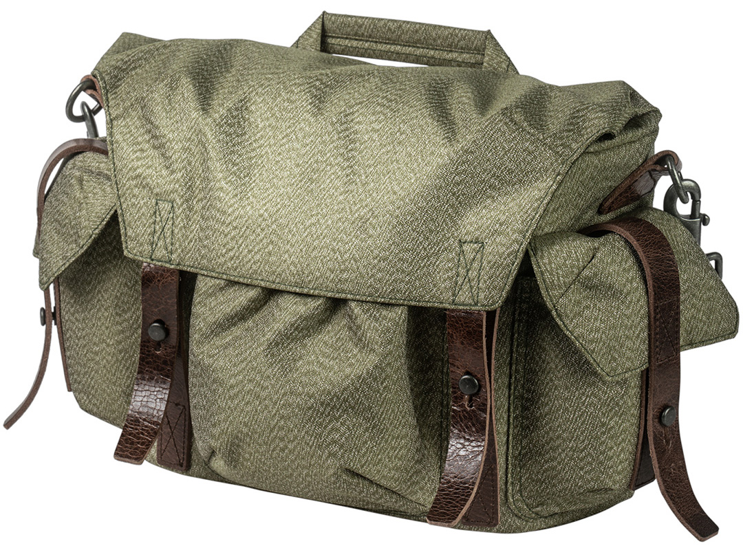 ヴォータンクラフト、一眼レフ+レンズ2~3本を収納できるビンテージ風バッグ「スカウト」。グリーンとブラックの2色
