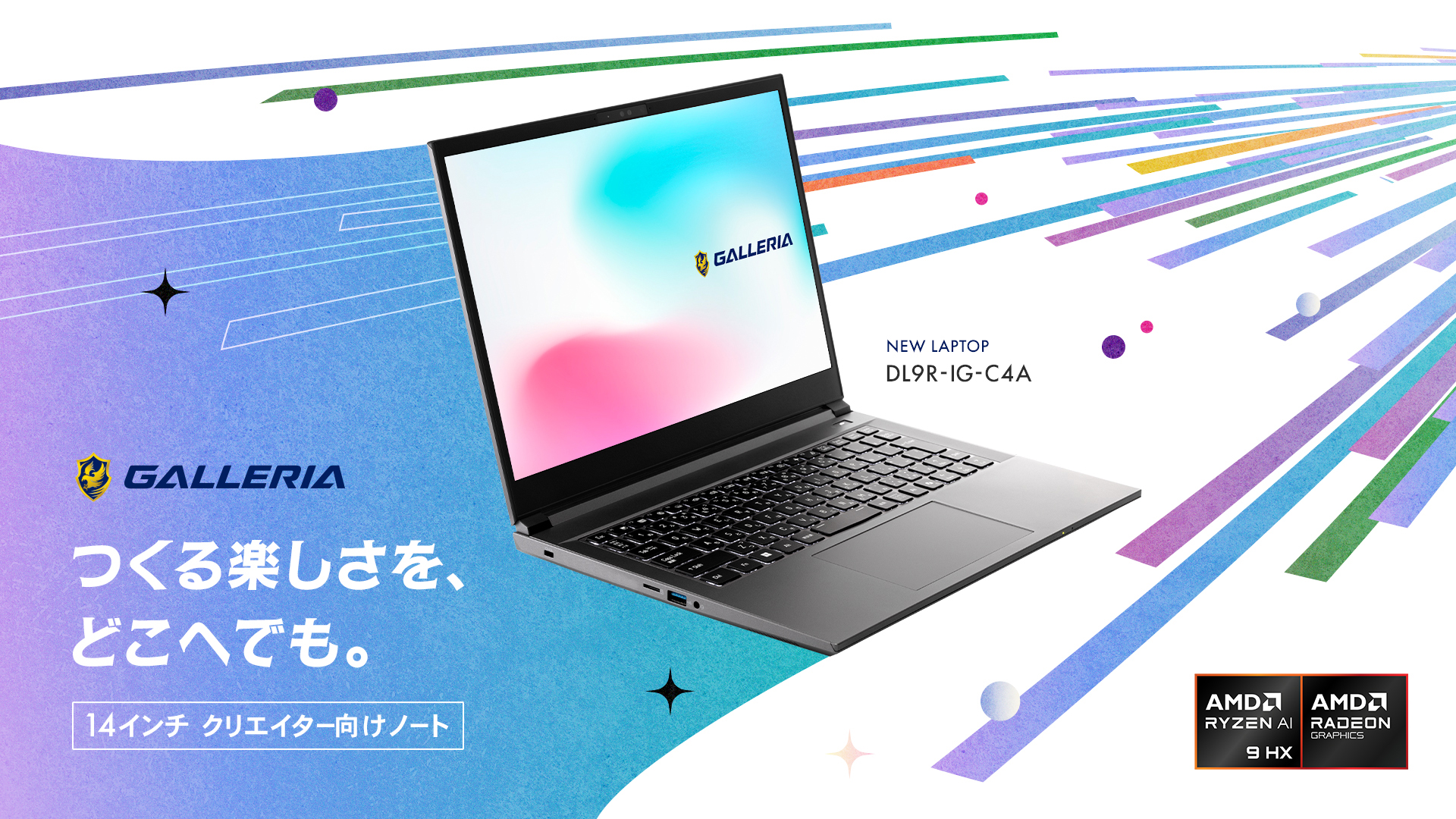 GALLERIA、最新AIプロセッサ搭載のクリエイター向け14型ノートPC