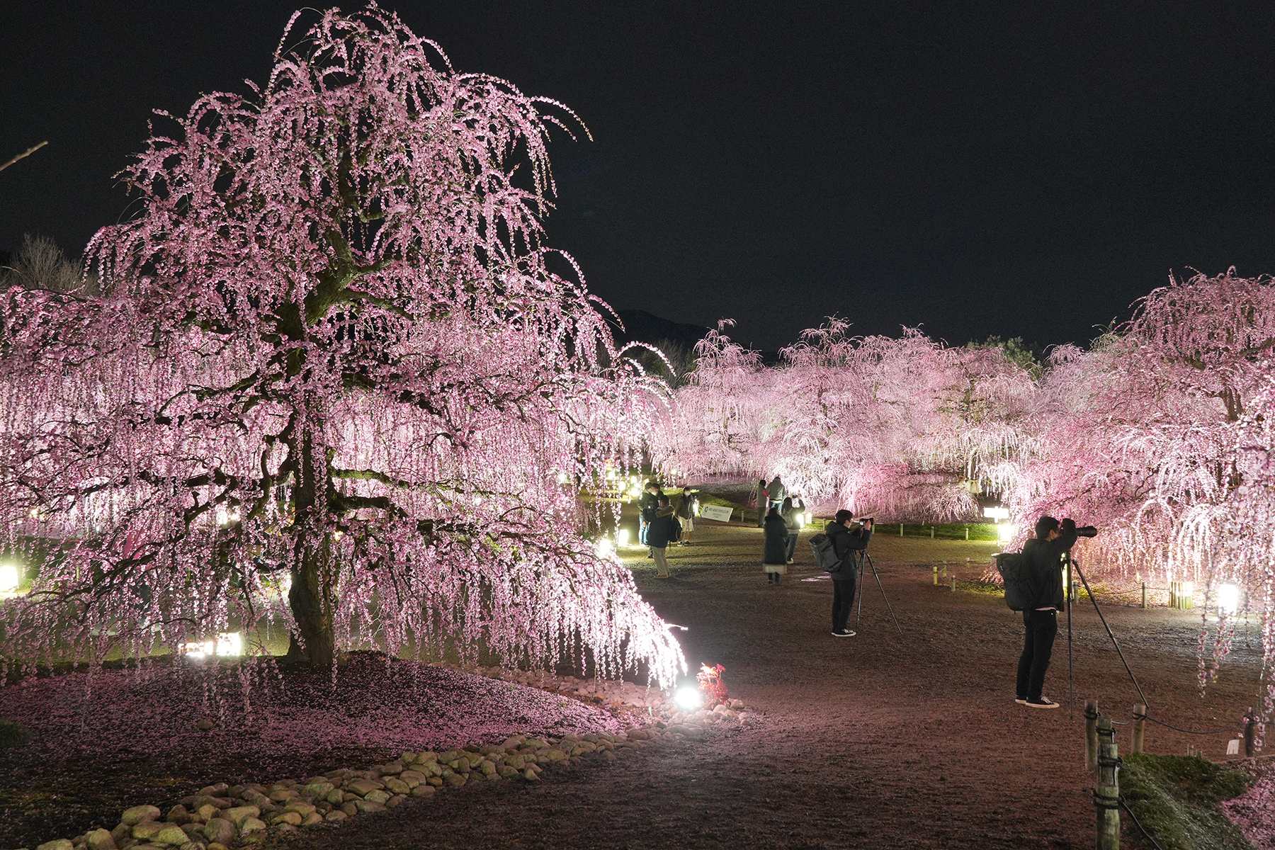 100年超のしだれ梅がライトアップ 鈴鹿の森庭園の名木が見頃に