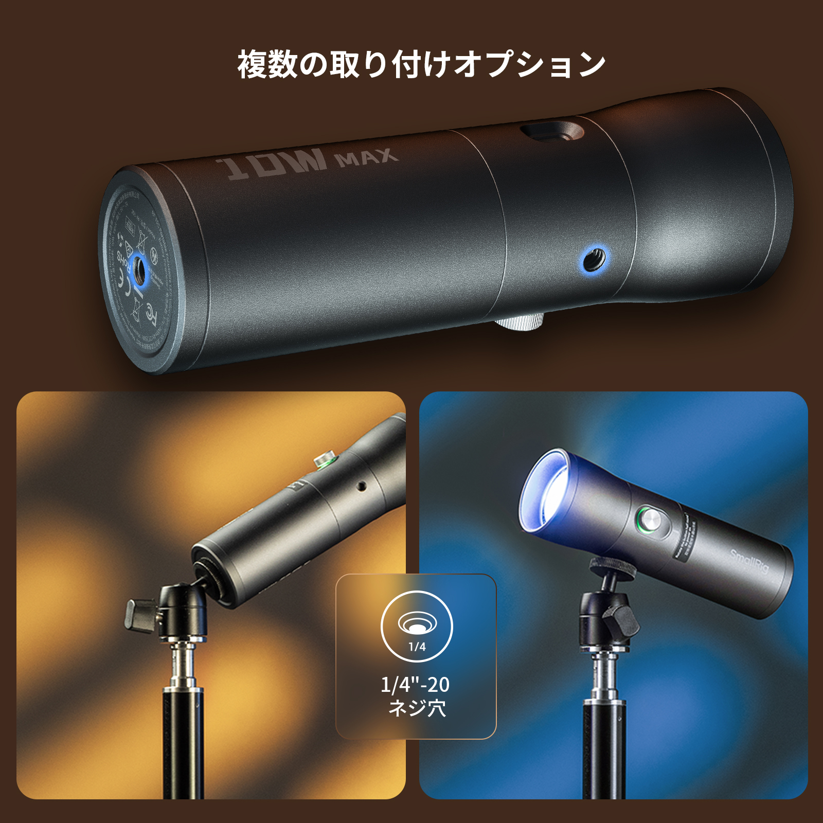 4色のLEDで背景やムードの演出に…SmallRigのズーム機能付き懐中電灯