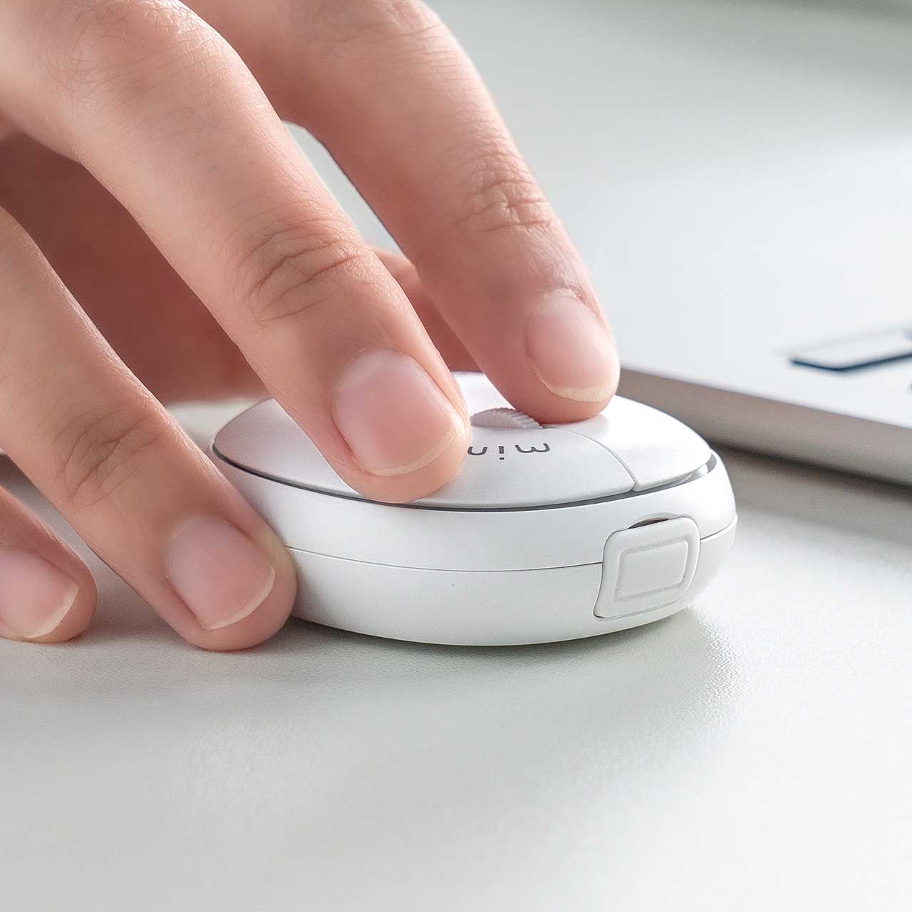 持ち運びに適したUFO型のワイヤレスマウス 厚みは従来の半分以下
