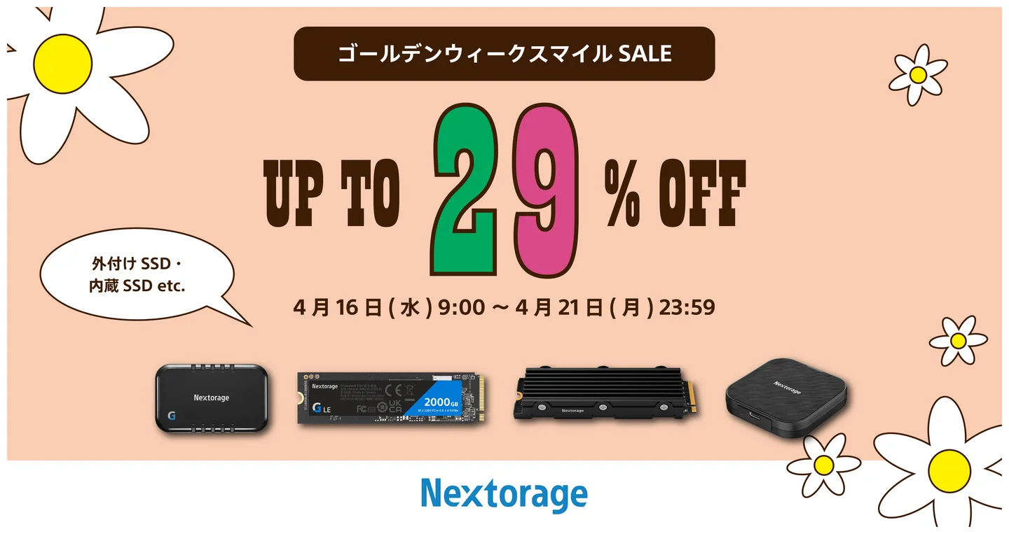 ポータブルSSDやmicroSDが割引価格に…Nextorageが「Amazon ゴールデンウィーク スマイルSALE」に参加