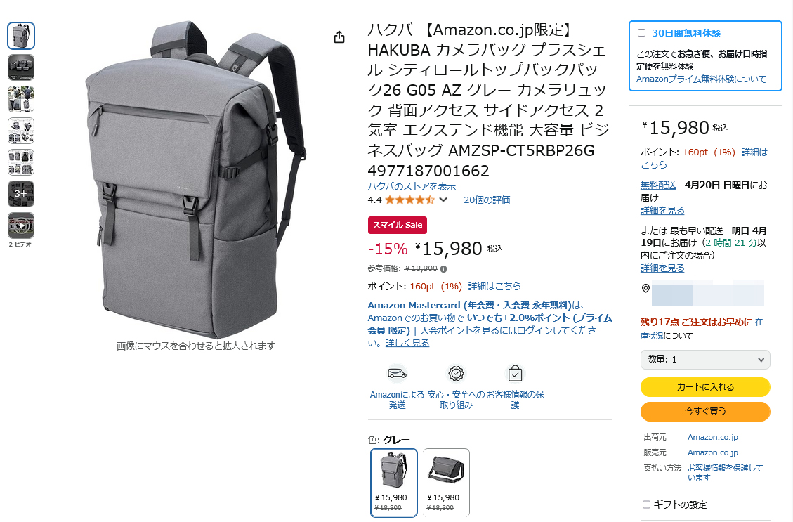 カジュアルデザインのロールトップ式バックパックが15%OFFに