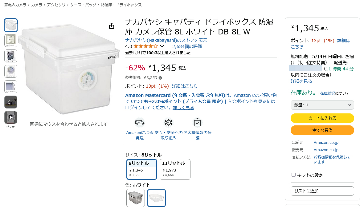 内部の湿度を確認できる「ドライボックス8L」が62%OFF