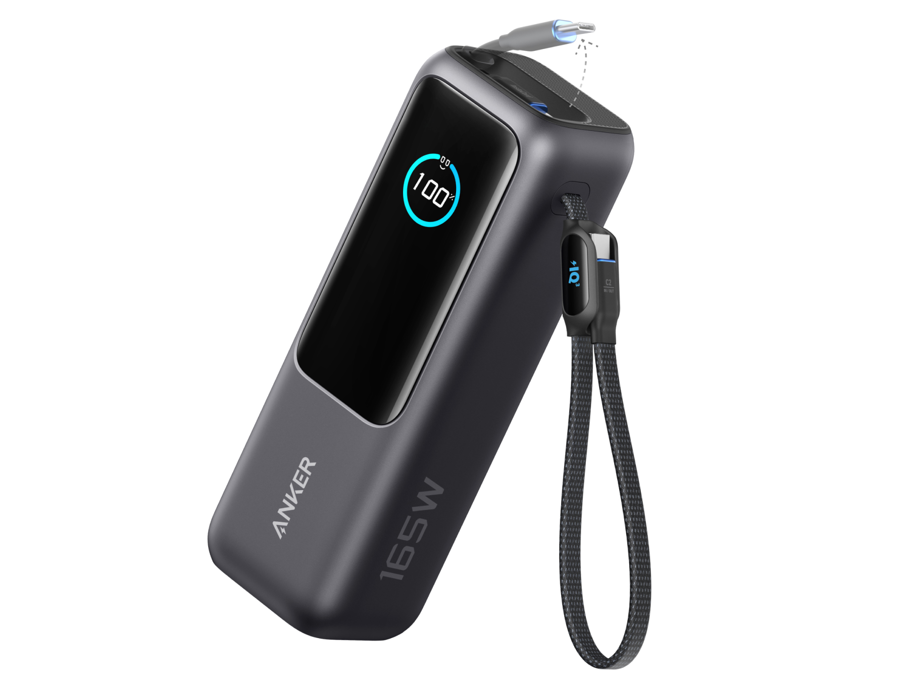 巻取り式とストラップ型、2本のUSBケーブルを内蔵。2万5,000mAhのAnkerモバイルバッテリー
