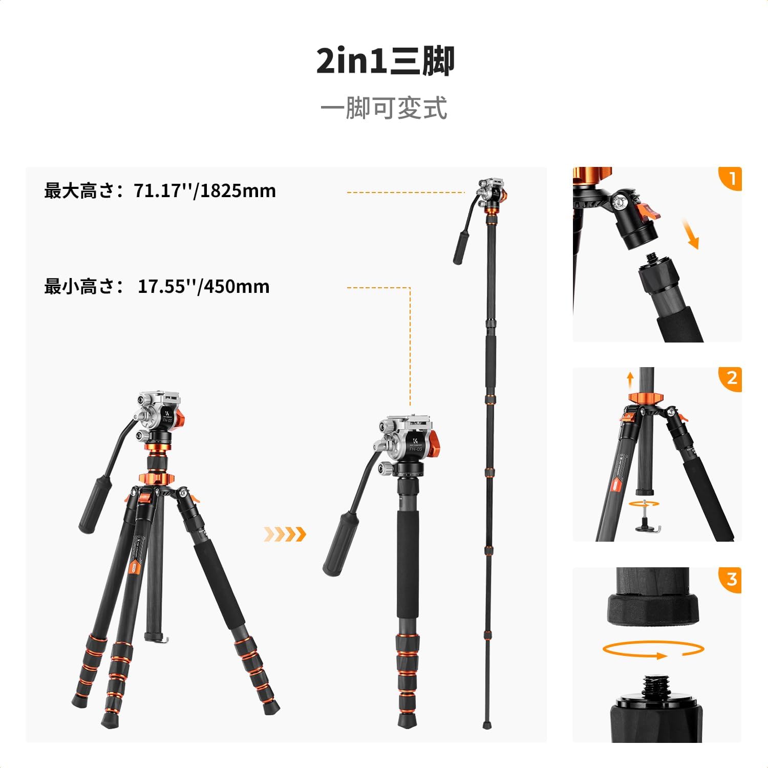 K&F Concept、一脚にもなるトラベル三脚