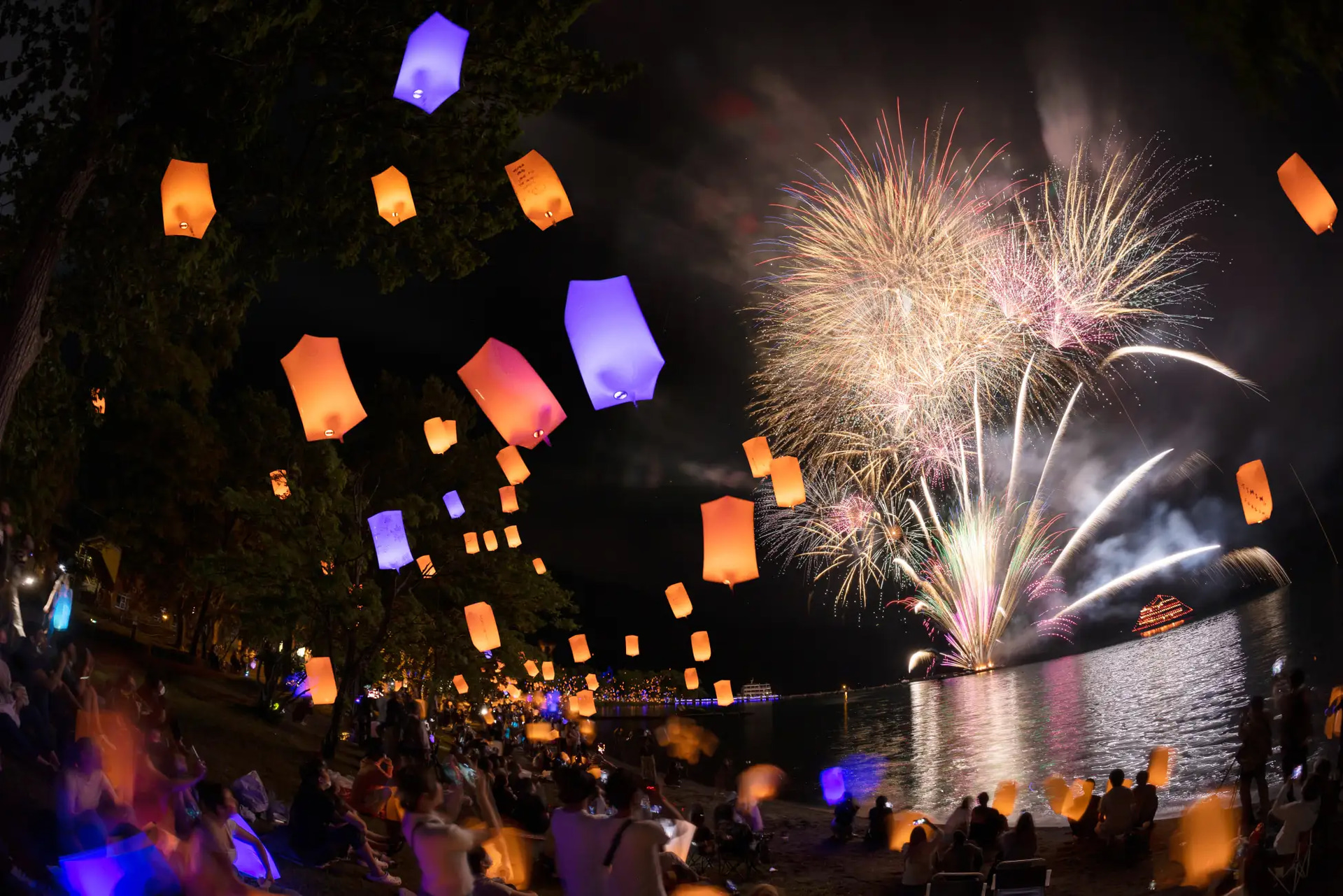 花火とバルーンランタンが夜空を彩る「十和田湖湖水まつり」