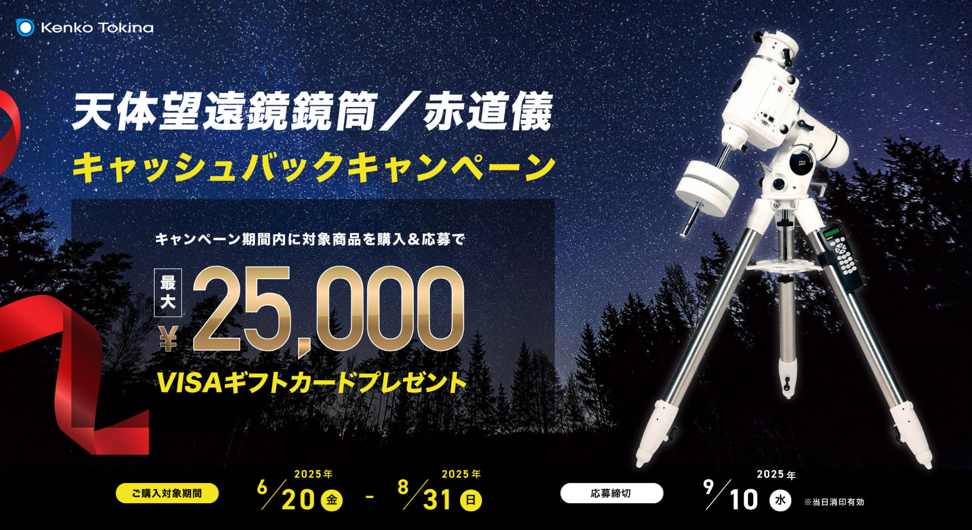 ケンコー「スカイエクスプローラー」赤道儀・鏡筒の購入で、最大2万5,000円がキャッシュバック