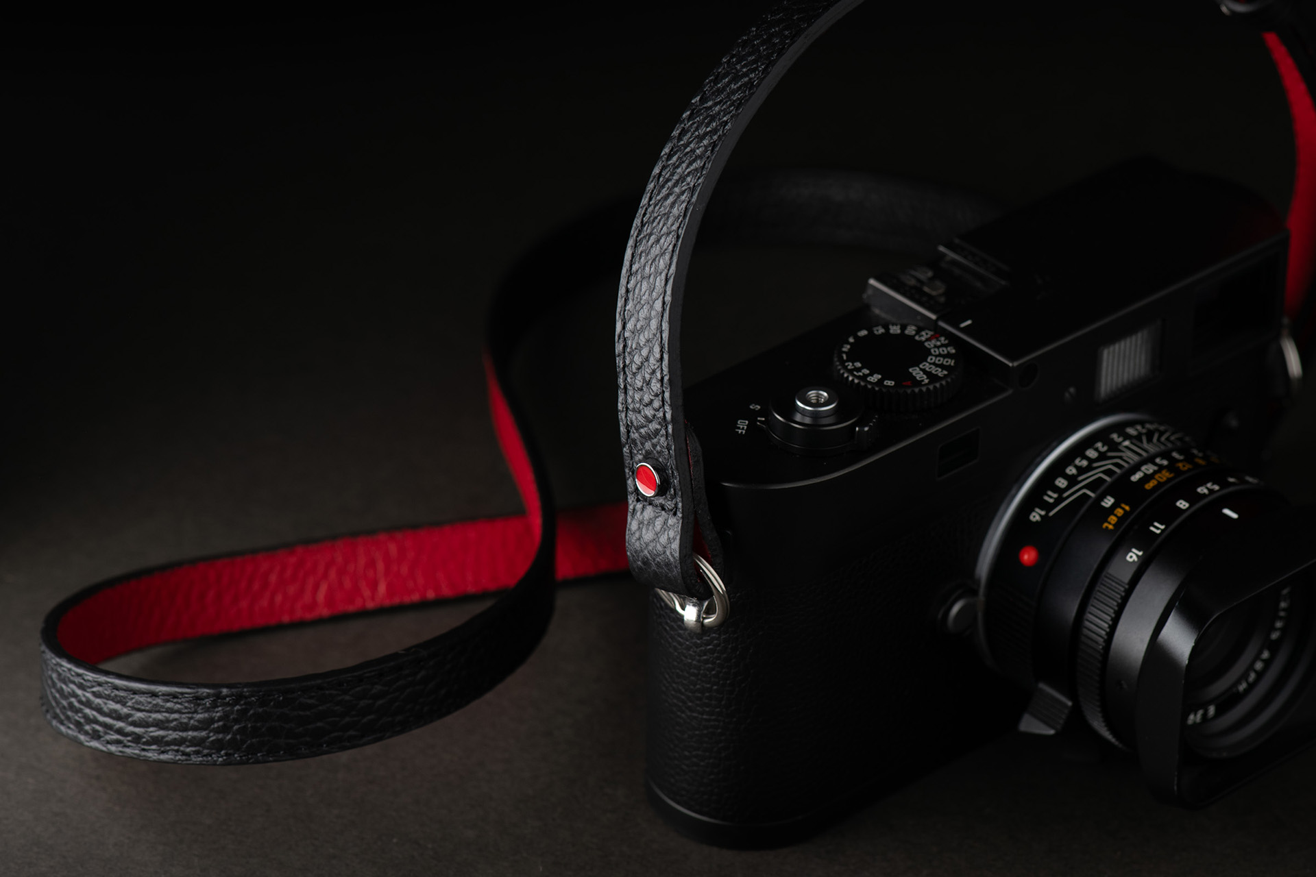レザーピースを繋いだカメラストラップに、ブラック×レッドの「ロックンロール SL2〈リミテッド〉」