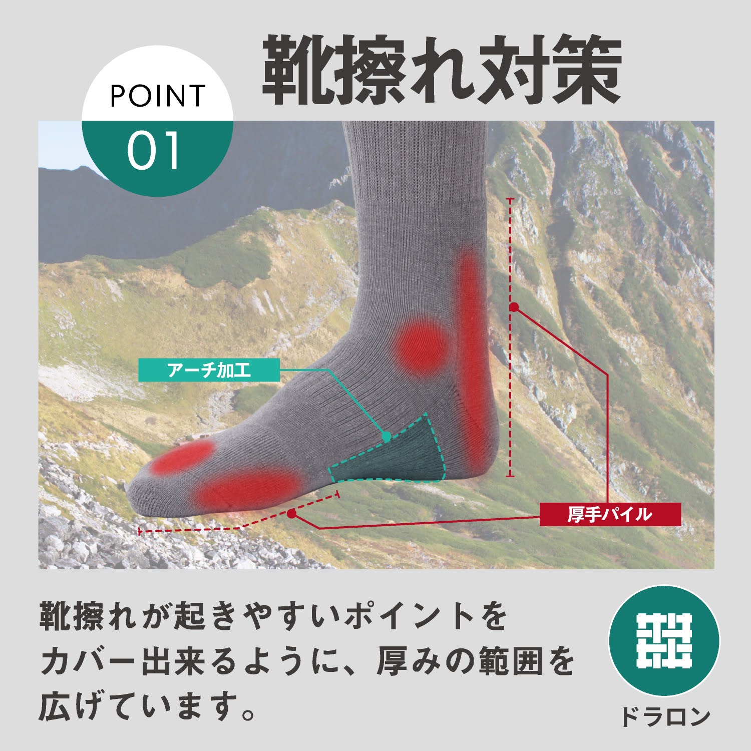 長時間歩行のつらさを軽減。靴擦れを防止するトレッキングソックス