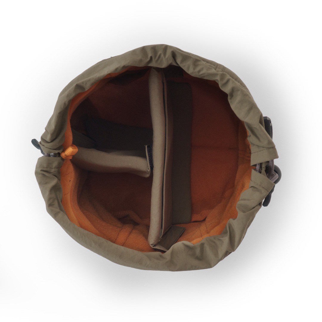 ショルダーバッグともして使える、高いデザイン性のカメラ用巾着ポーチ