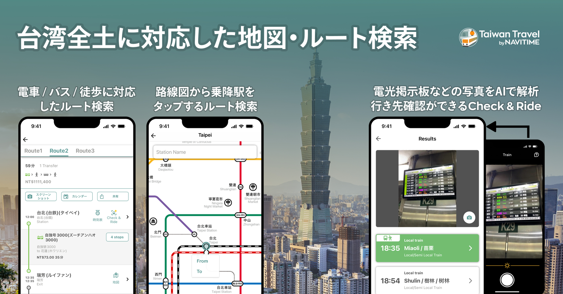 ナビタイムの台湾旅行者向けアプリ「Taiwan Travel」。交通網と観光地をカバー