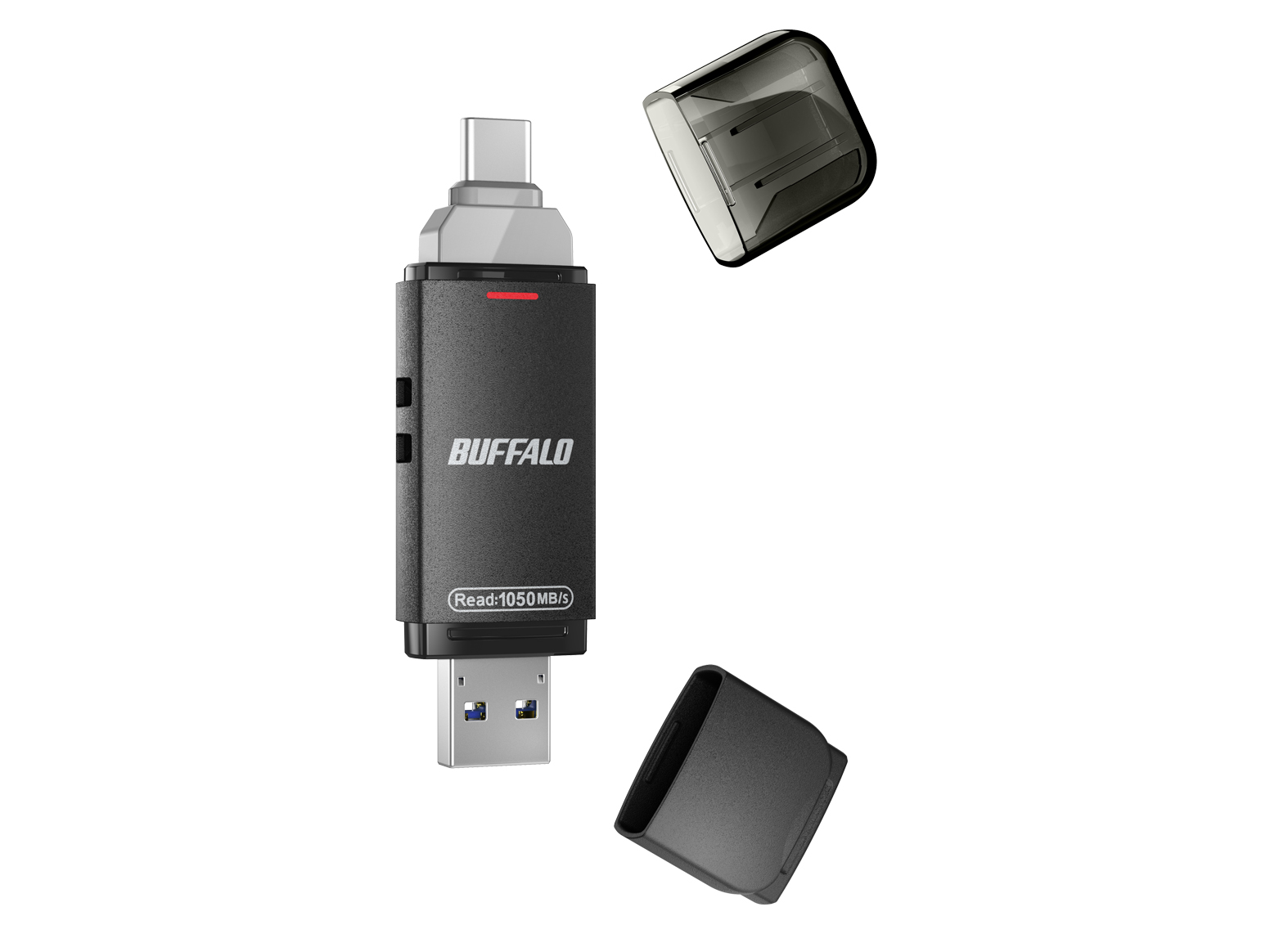スライドしてType-C/Type-Aを切り替えるスティック型SSD