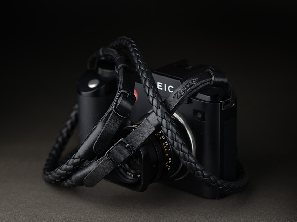 「ロックンロールカメラストラップ」にブラック編み込みレザーの新タイプ