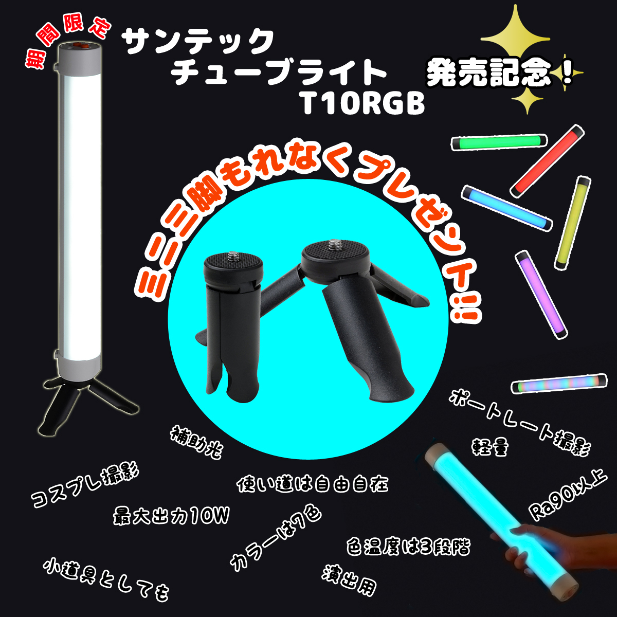 Phottix、チューブタイプのフルカラーLEDライト「T200R RGB Tube Light」。複数連結に対応